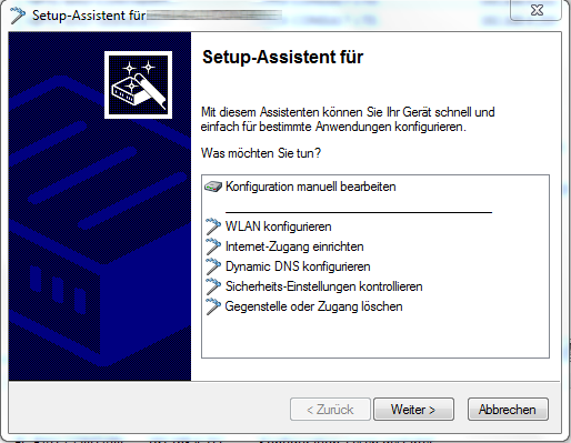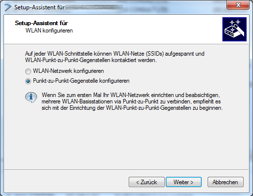Die Einrichtung erfolgt im Programm LANconfig über den Setup-Assistent, Punkt "WLAN konfigurieren".